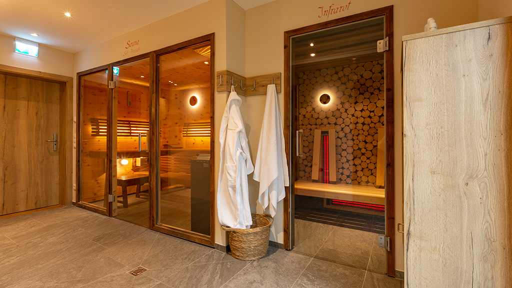 Unsere Sauna (Finish- oder Biosauna) sowie die Infrorotkabine stehen Ihnen gerne jederzeit zur Verfügung. Auch der kleine Fitnessbereich lädt zum Auspowern ein - Ruhe finden Sie danach im Ruheraum.